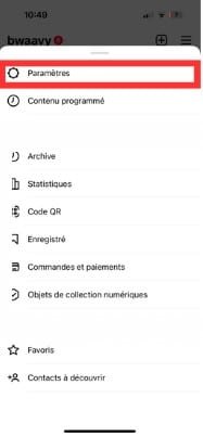1. Cliquez sur les trois lignes horizontales dans le coin supérieur droit de votre page de profil et cliquez sur Paramètres.
